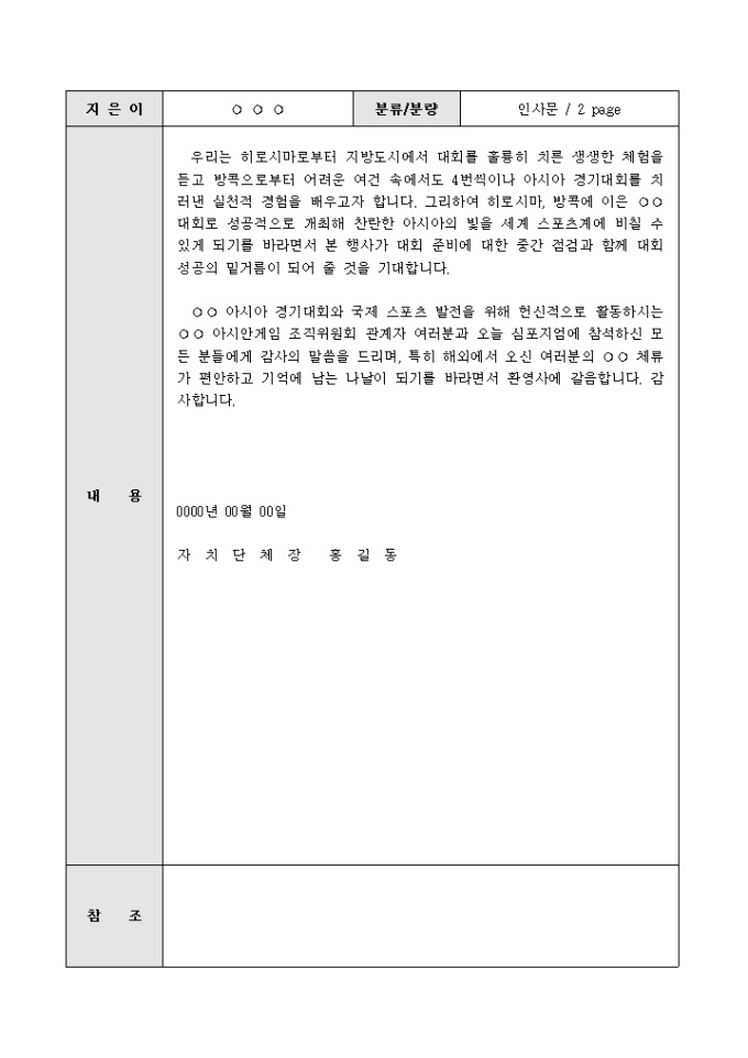 카테고리 샘플 연설 환영사