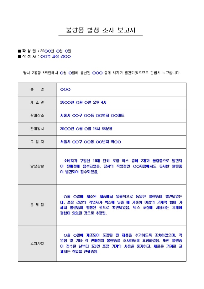 내부 사고 보고서(불량품 발생)