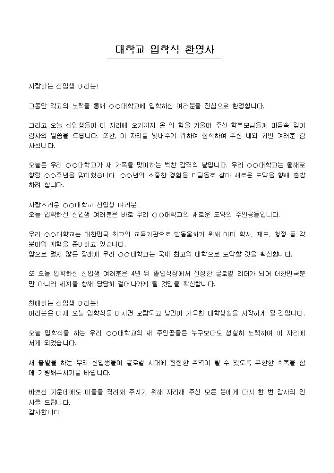 대학교 입학식 환영사