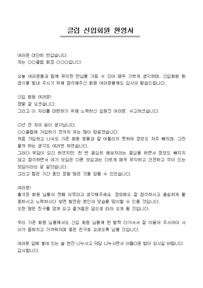 클럽 신입사원 환영사