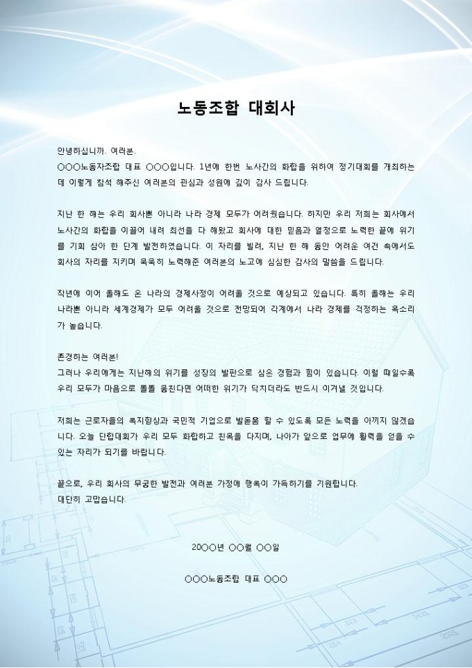 노동조합 대표 대회사 인사말