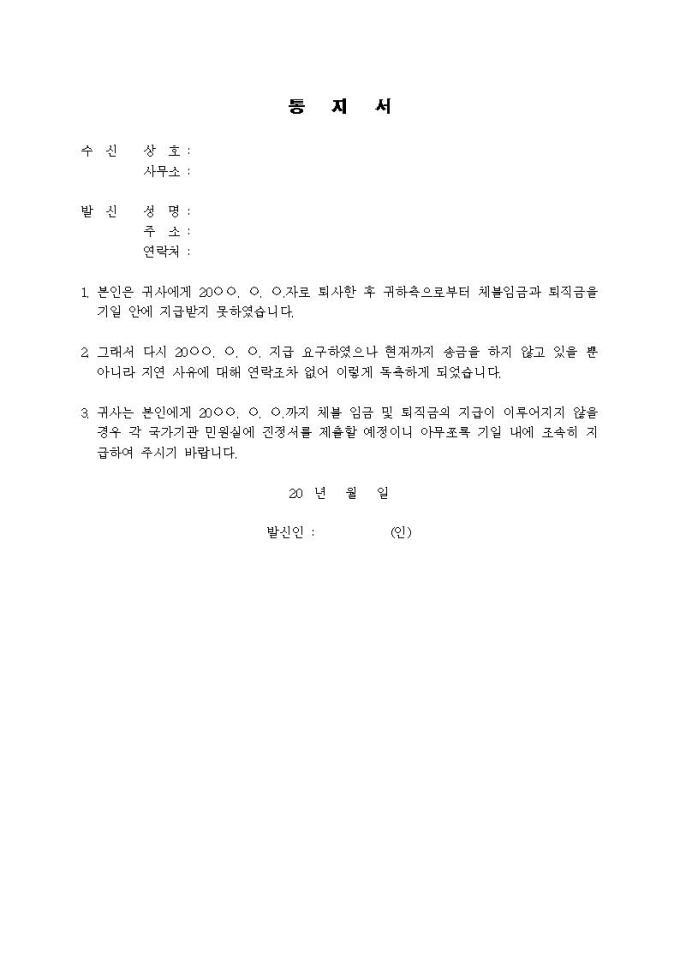 (내용증명)체불임금 및 퇴직금의 지급을 독촉할 때