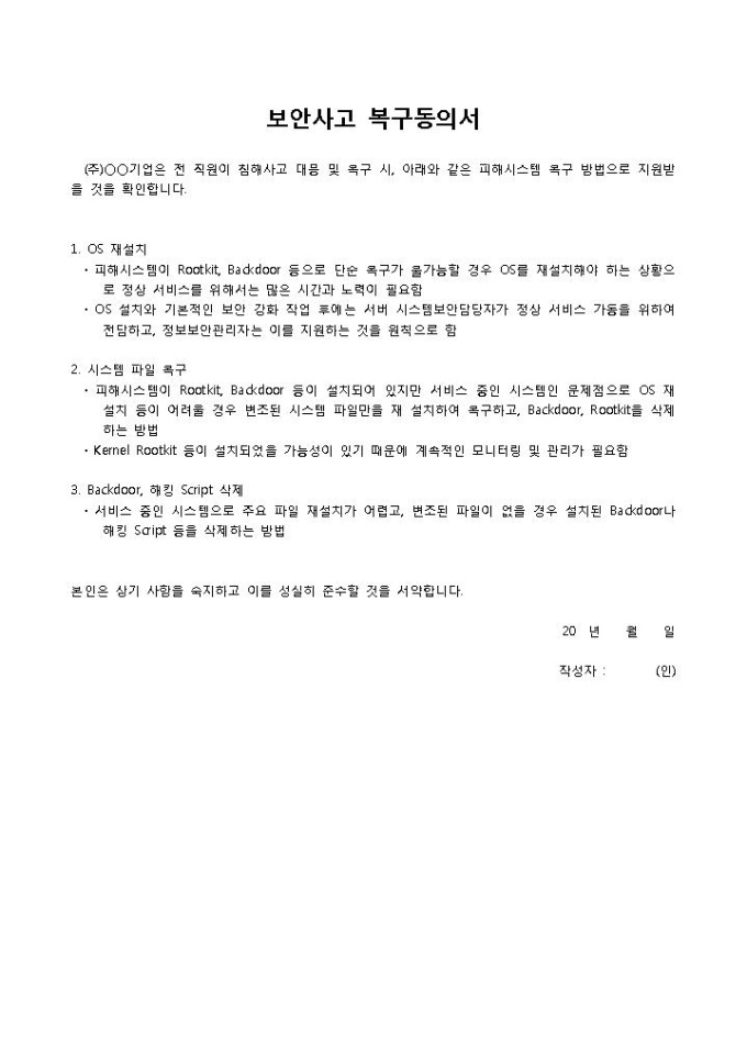 보안사고 복구 동의서