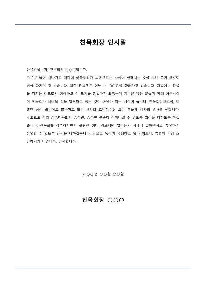 친목회장 인사말