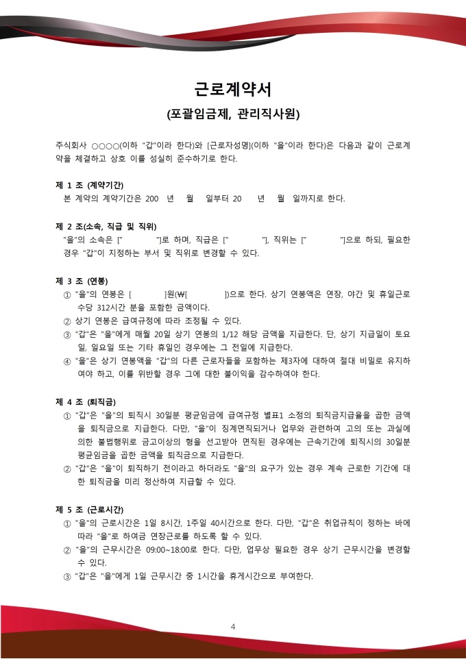 | 임금 구성 | 기본급 + 각종 수당 포함 | 기본급 + 별도 수당 지급 |
