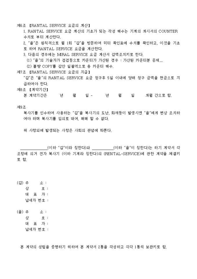 렌탈 서비스 계약서