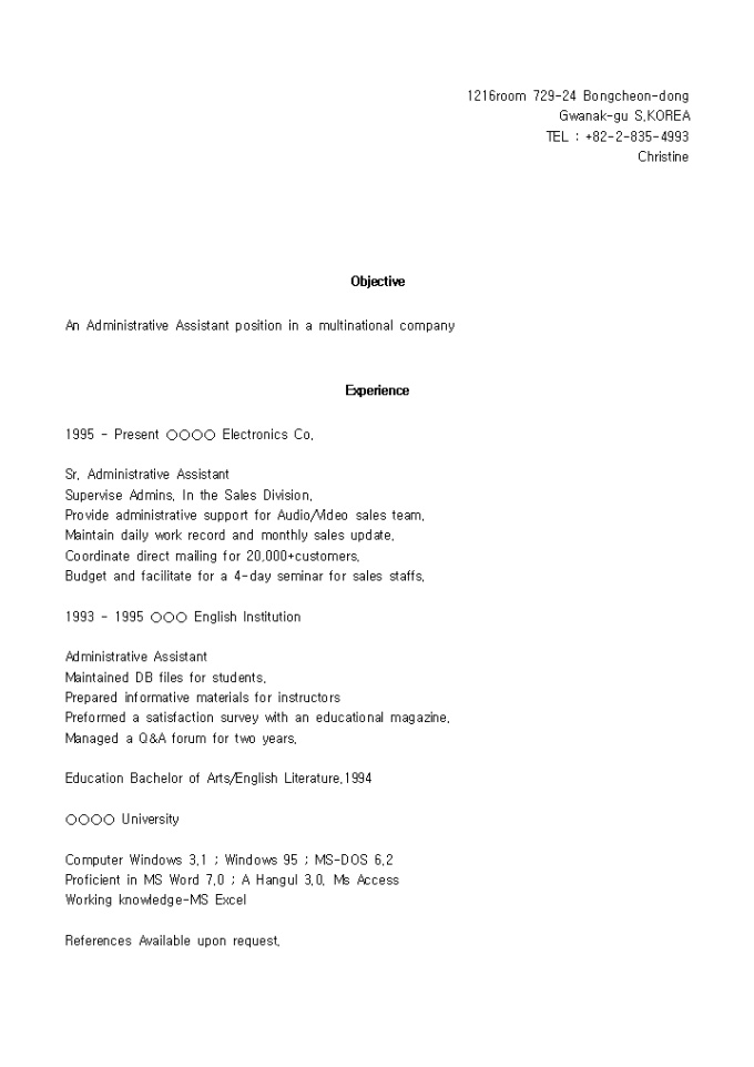 [영문이력서, resume]영업관리(컨설턴트)_경력