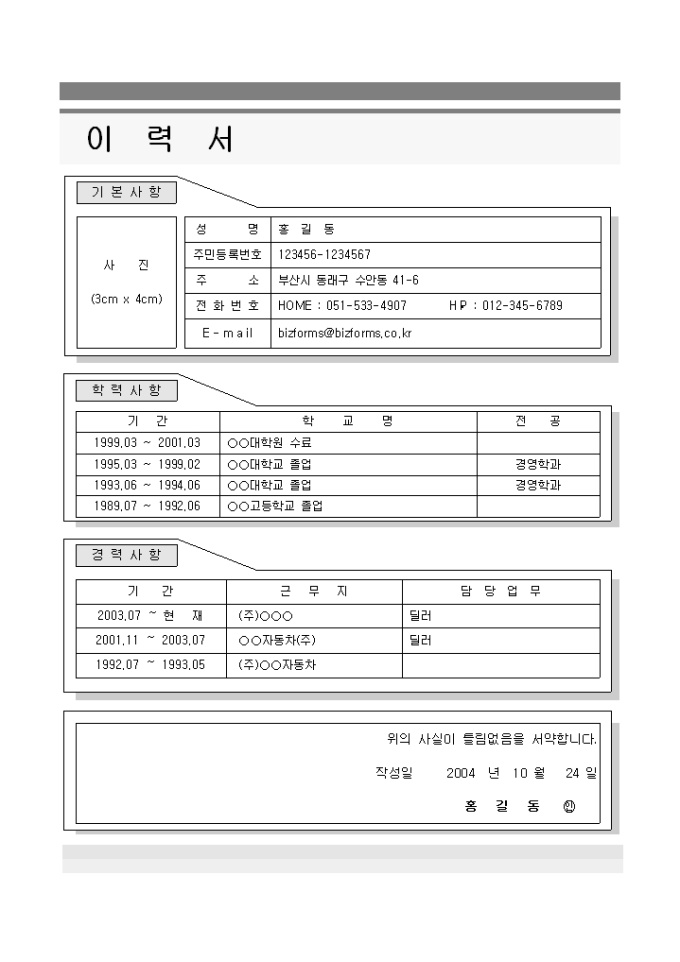 자동차 영업 이력서 샘플(폴더형 표 디자인)