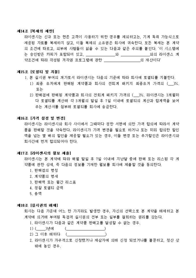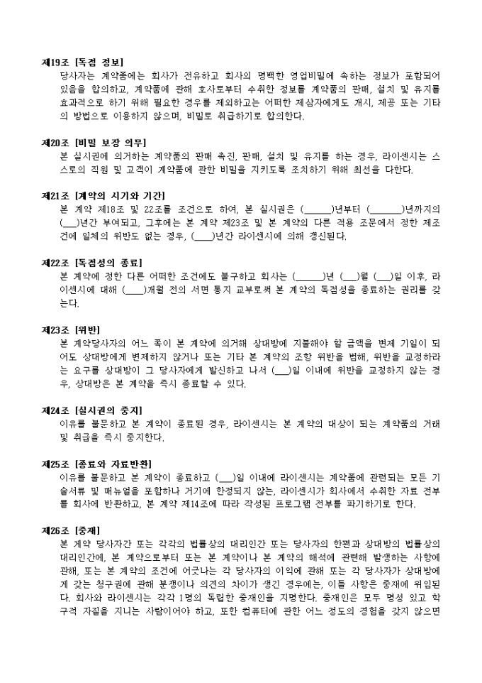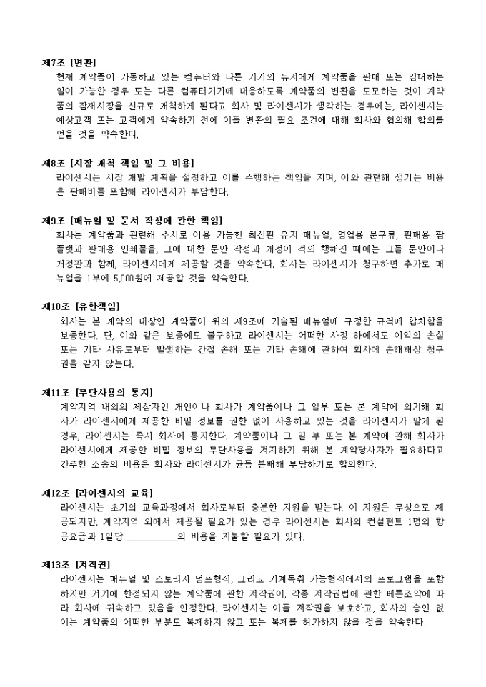 소프트웨어 라이센스계약서
