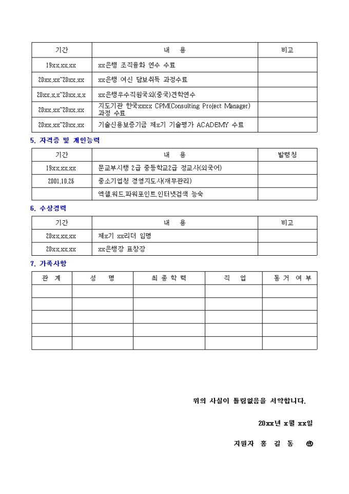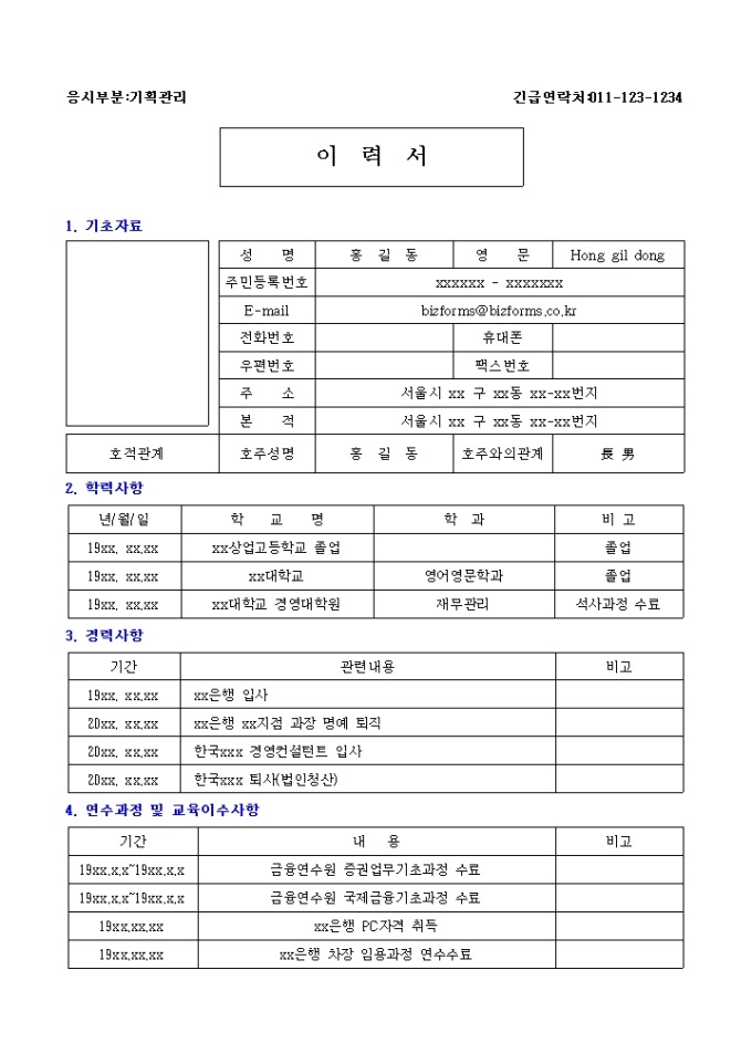 재무관리 이력서 샘플