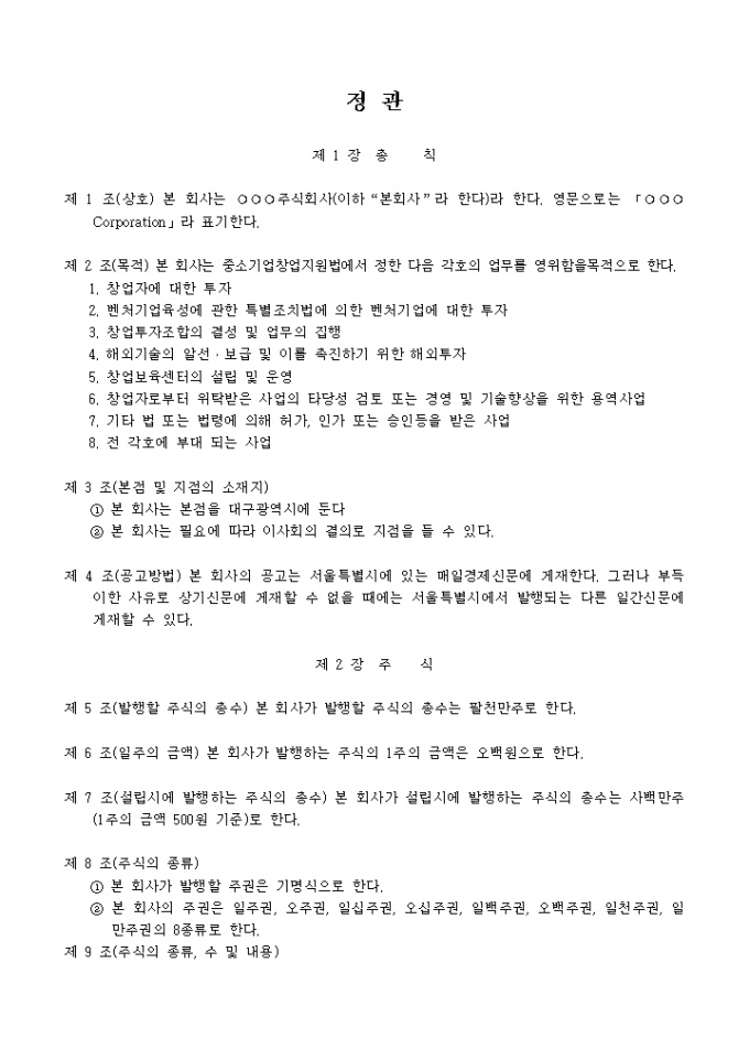 카테고리 샘플 기업일반 정관