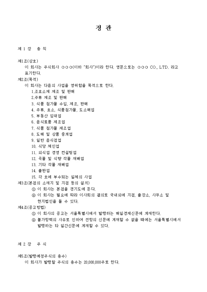 카테고리 샘플 기업일반 정관