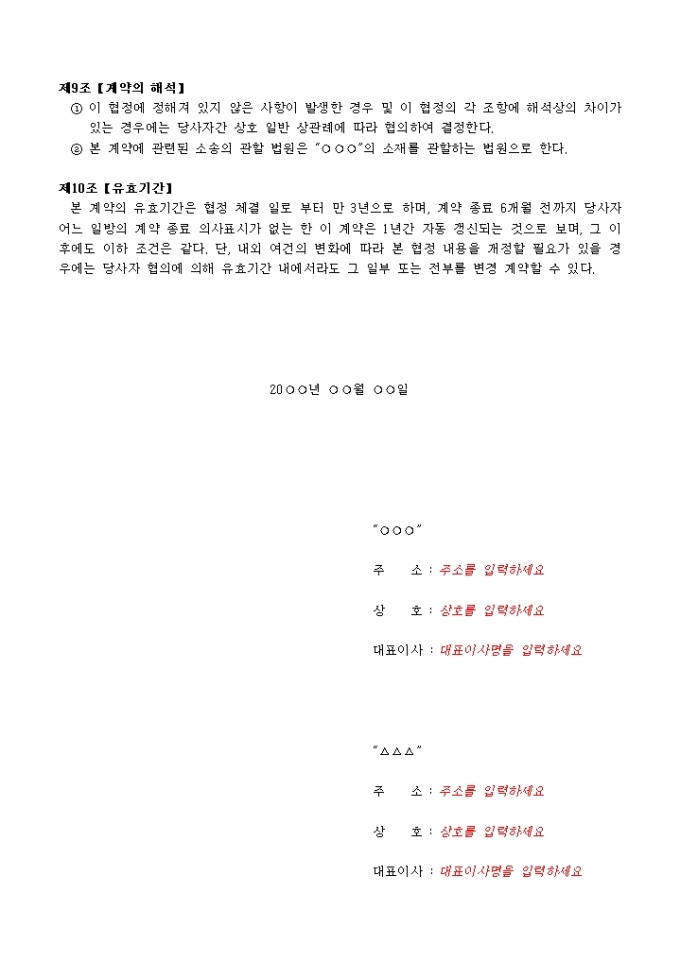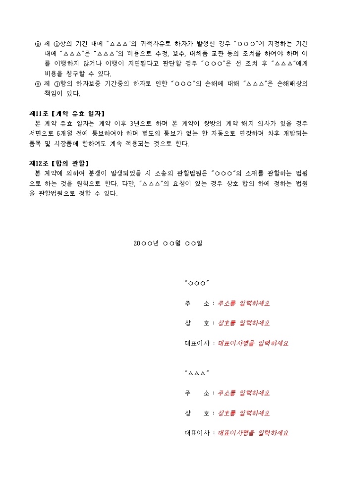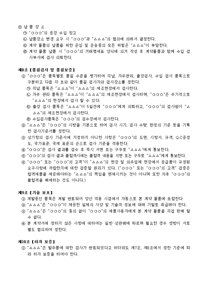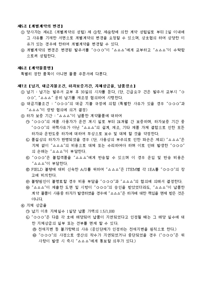 제6조【계약물품명】제7조【납기, 대금지불조건, 하자보증기간, 납품장소】