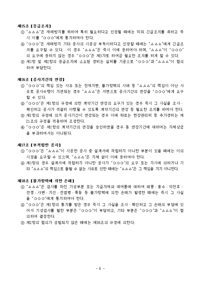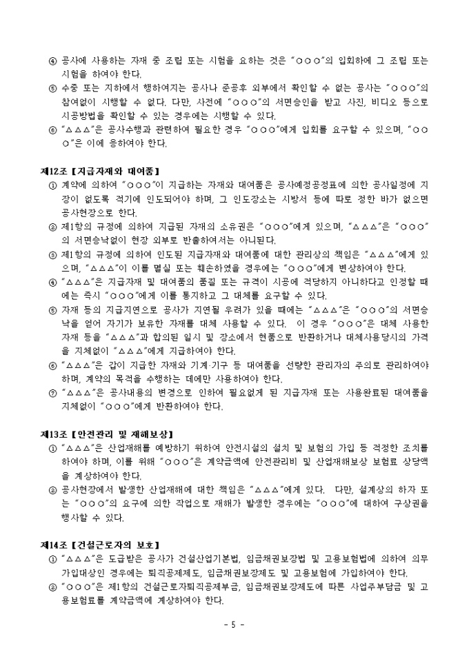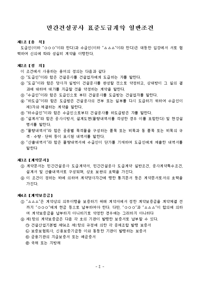 도급인과 수급인은 대등한 입장에서 서로 협력하며 계약을 이행한다는 내용의 민간건설공사 표준도급계약서입니다. 제1조【총 칙】