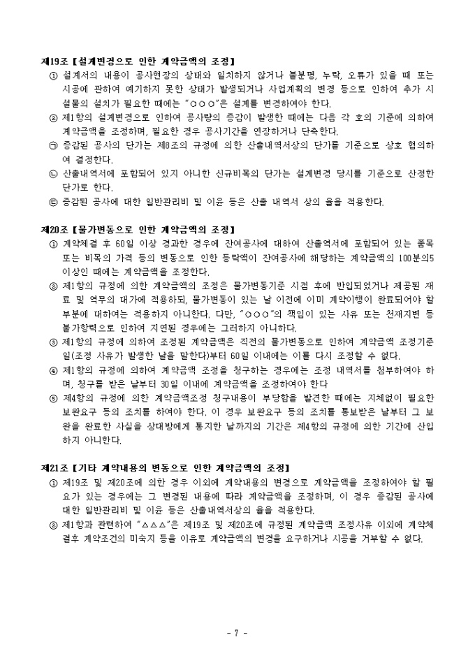 제20조【물가변동으로 인한 계약금액의 조정】제21조【기타 계약 변동으로 인한 계약금액의 조정】