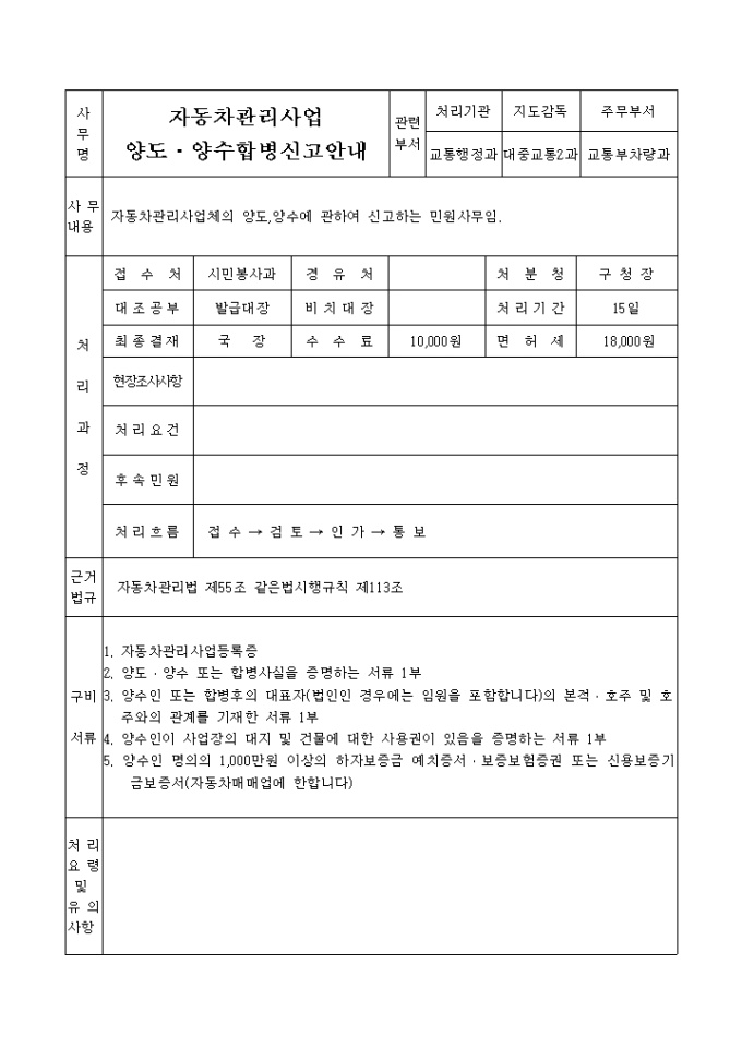 자동차관리사업양도, 양수, 합병신고서