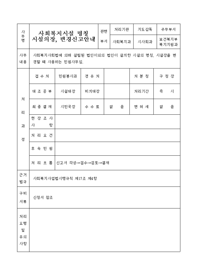 사회복지시설명칭, 시설의장변경신고서