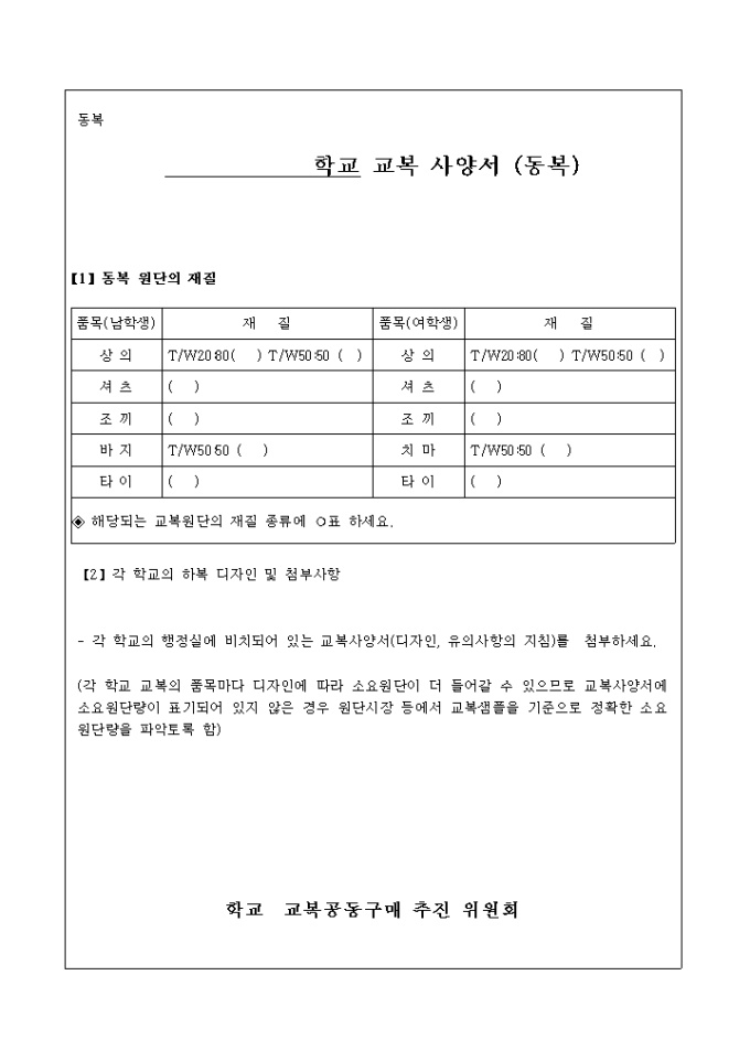 학교 교복 사양서