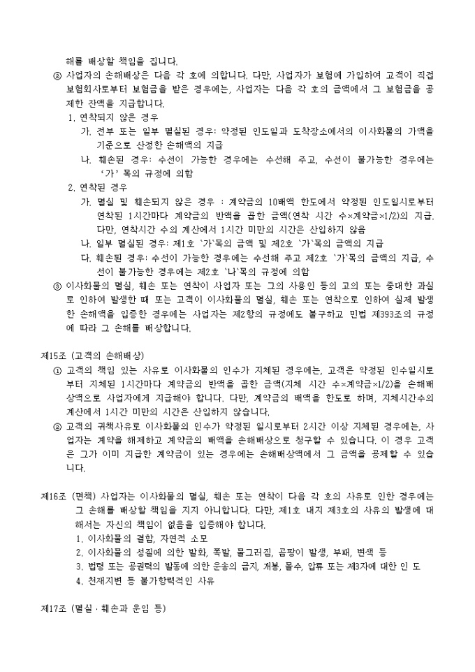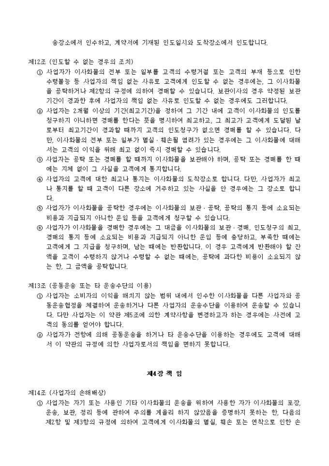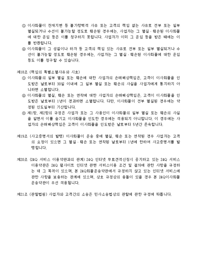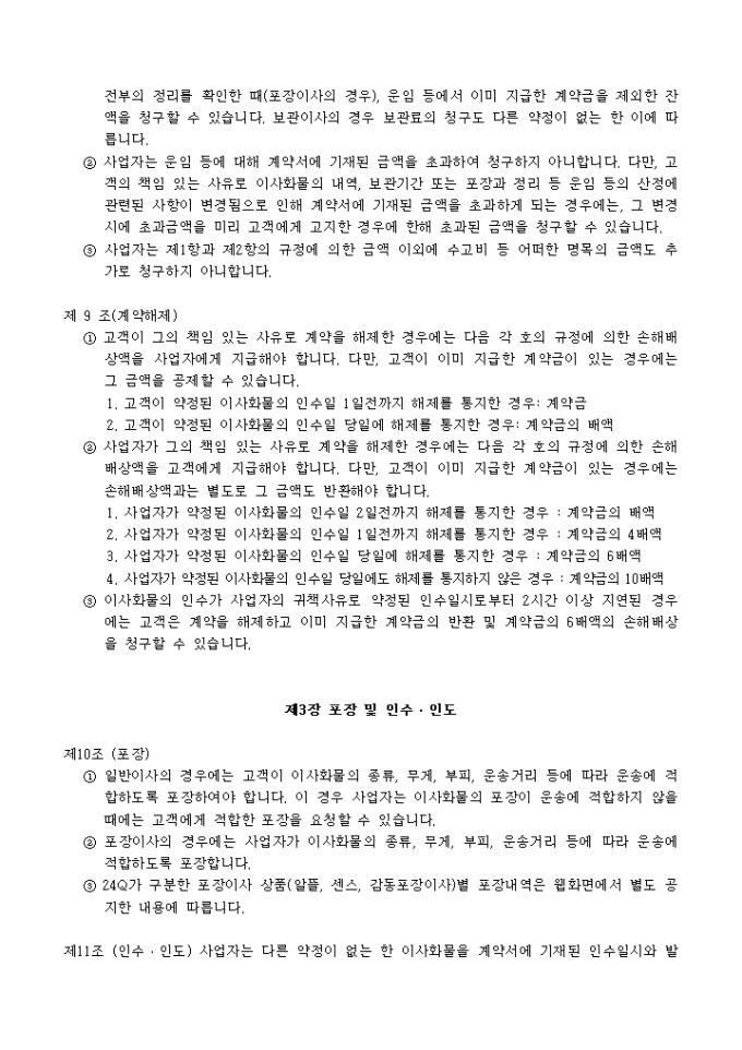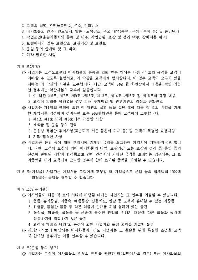 이사화물 운송약관