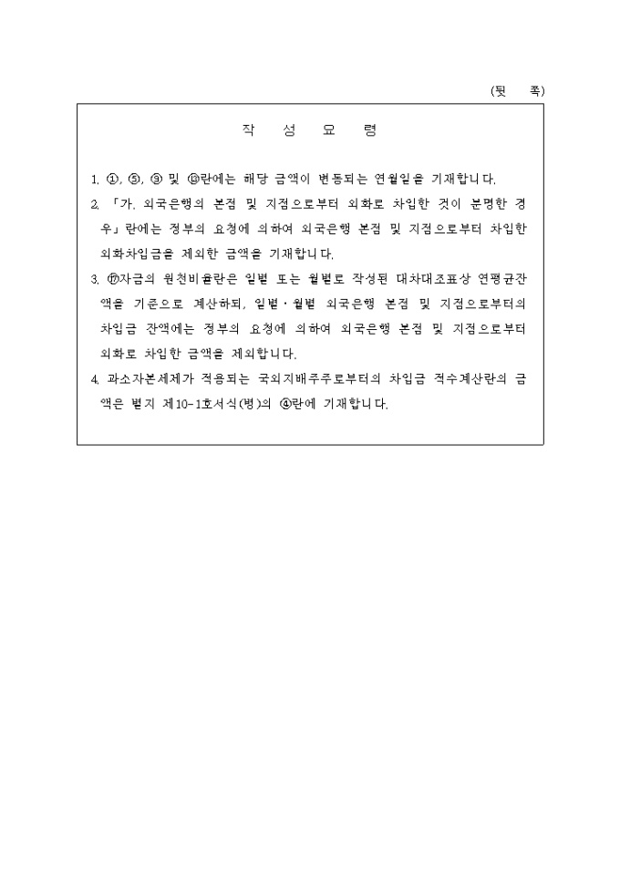 제10.1호(정)외국은행국내지점이국외지배주주로부터차입한금액의적수계산명세서(2001.4.3. 개정)