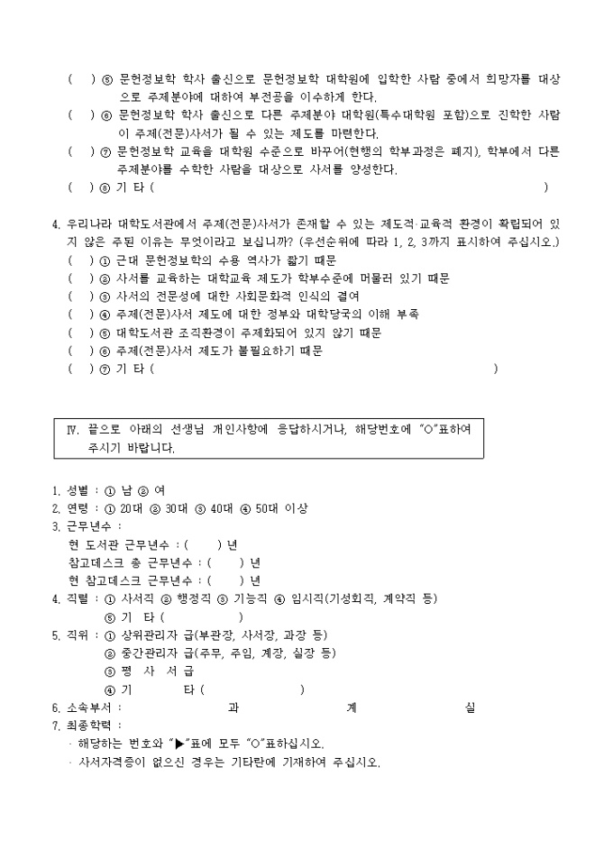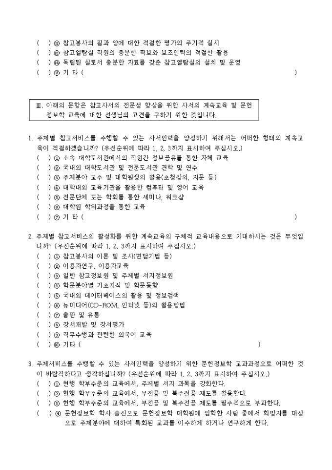 설문조사(대학도서관 참고서비스 활성화방안)