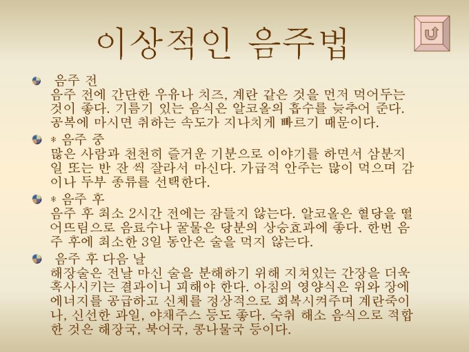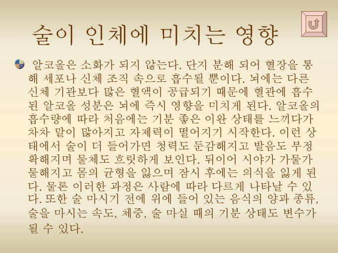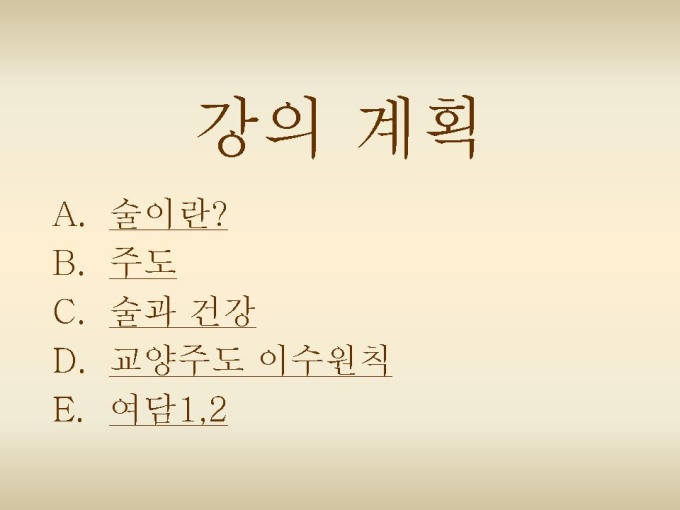 술이란? 주도 술과 건강 교양주도 이수원칙 여담1,2 프리젠테이션 자료 (대학생의 음주문화) 입니다.