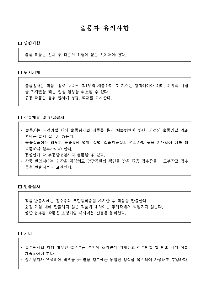 자연환경미술 공모대전출품원서