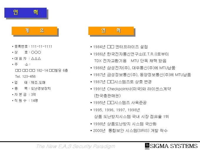 보안 도난 경보 등의 제조 도매업 대한 제안서 샘플입니다.