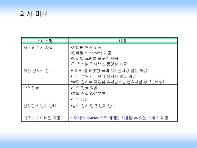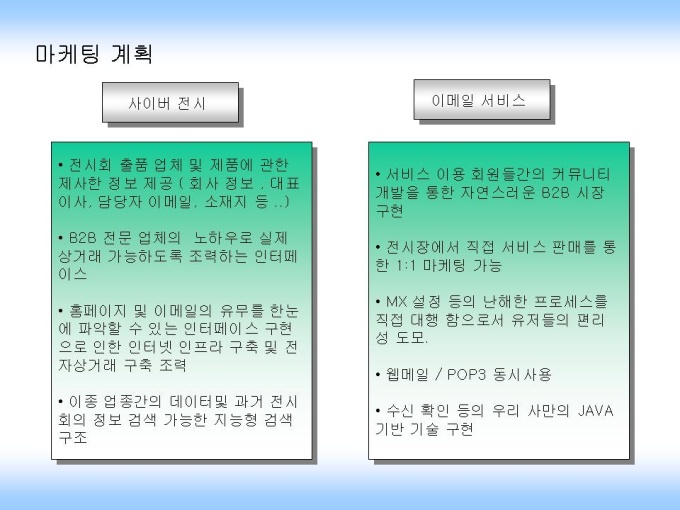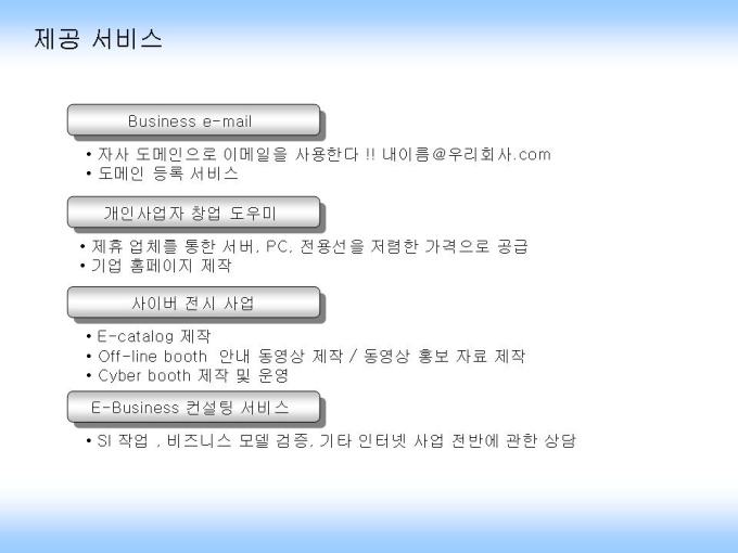 사이버 부스, 쇼핑몰, 여행숙박업소 등의 정보제공 컨텐츠에 관한 제안서 샘플입니다.