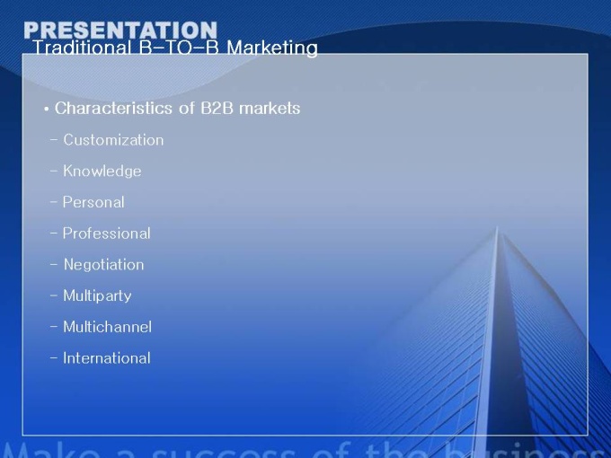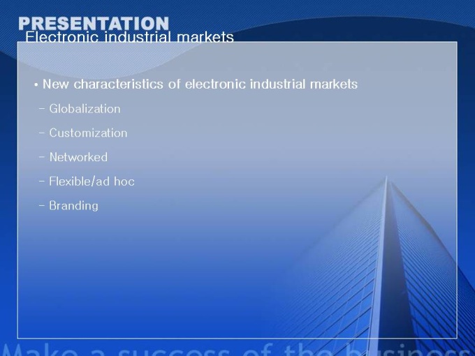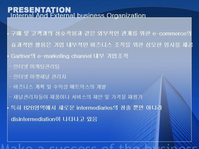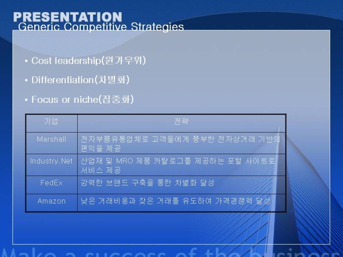 영문 일대일마케팅 마케팅 타겟 웹마케팅 유통채널에 관한 사업계획서입니다. 자세한 내용은 아래의 목차를 참고하세요. -목차- 1.Porter’s Five Forces Model 2.Industry Competition 3.Suppliers’ Power 4.Customers’ Power 5.New Entrants 6.Substitutes 7.Generic Competitive Strategies 8.Transaction Costs 9.Case - Citius - Tradezone - GEN - Infomar 10.Internal And External business Organization 11.Traditional B-TO-B Marketing 12.Electronic industrial markets 13.Segmentation and Targeting 14.E-Commerce에서의 마케팅 믹스 전략 15.One - TO - One Marketing 16.Roadmap for Business-to-Business Electronic Commerce 17.Critical Assumption and Strategy Development 18.Quality of Market Research 19.Dynamics of Technology and Growth of Electronic Commerce 20.Towards a Global Legal Framework for the Digital Economy? 21. Strategy Development – Strategic Fit 22. Scenarios for the Future of B2B Electronic Commerce (전체요약) -Competing and Collaborating in Value Network and Dynamic Market -Thriving on Information -Converging B2B and B2C Electronic Commerce -New Technologies, New Business Models, New Policies: New Rules? 23.Conclusion