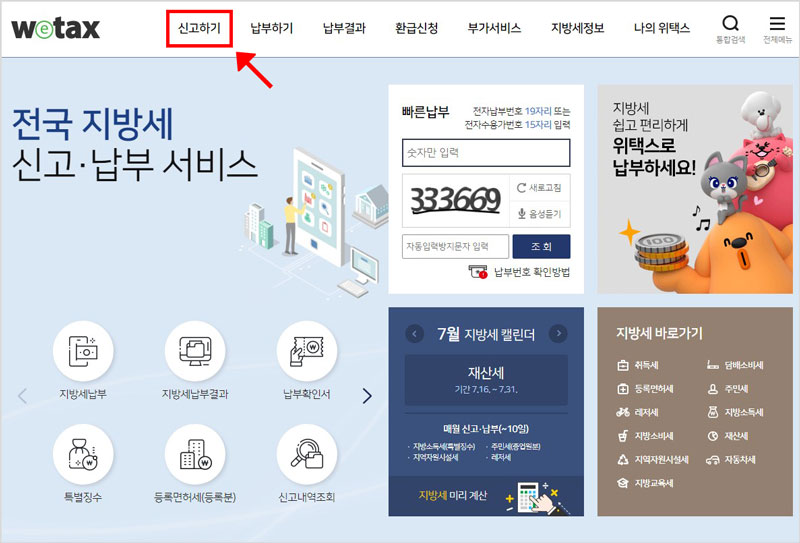 주민세 등 지방세는 온라인 지방세 신고납부 사이트 위택스(www.wetax.go.kr)또는 각 지자체 인터넷 지방세 납세 서비스로 접속해 신고납부 탭에서 신고하시면 됩니다.