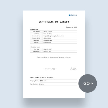 영문 경력증명서란 지금까지 근무한 경험을 증명하기 위해 영문으로 기록된 문서라고 보시면 됩니다. 경력증명서를 영어로 하면 Certificate of Career 또는 Career Certificate라고 할 수 있는데요. 정해진 양식이 있는 건 아니지만 기본적으로 인적 사항(Personal Information), 경력 사항(Details on career), 회사정보와 같은 내용이 포함됩니다.
