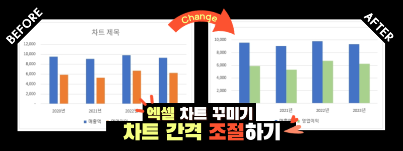 차트 계열 간의 간격이 너무 붙거나, 너무 떨어져 있으면 구분이 잘 가지 않거나 가독성이 떨어지게 됩니다.