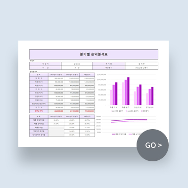 분기별 손익분석표입니다. 작성자, 매출액, 매출원가, 매출이익, 판관비, 영업이익, 영업외수익, 영업외비용, 법인세차감전순이익, 법인세, 당기순이익 등으로 구성되어 있습니다.