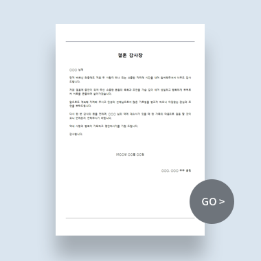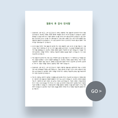 귀한 시간을 내어 우리의 결혼식을 찾아와 주신 고마운 분들에게 감사의 마음을 전달하는 시간입니다. 작은 선물이나 짧은 인사말들로 감사의 마음을 전달해 보시는 건 어떠실까요? 비즈폼에서 추천드리는 [결혼식 후 감사인사말]과 [결혼감사장] 서식을 통해 감사의 마음을 전달해 보세요😊