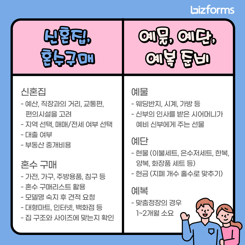 예쁘고 멋진 결혼식 준비와 새로운 시작을 위한 신혼생활, 멋지게 시작해 보세요!💙 여러분의 새로운 인생의 시작, 신혼 생활을 비즈폼이 응원합니다🙌
