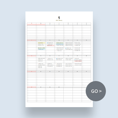 한눈에 1년의 모든 일자/요일을 파악할 수 있는 연간 달력! 1장으로 1년을 다 파악할 수 있기 때문에 매년 만들어서 사용하시는 분들이 많으시죠? 1년 단위의 계획을 미리 세우시는 분, 다음 시즌 또는 다음 월의 계획을 미리 기획해야 하는 업무가 많으신 분들에게 추천 드립니다!👍 원하는 디자인과 원하는 용도의 연간 달력 서식을 다운로드하여 사용해 보세요!