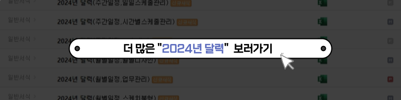 어느덧 2023년도 얼마 남지 않은 지금, 다가오는 2024년도를 맞이하기 위해 가장 먼저 하는 일! 바로 달력 준비가 아닐까 생각합니다. 올해도 어김없이 잘 준비한 [2024년 엑셀 달력]과 함께 2024년 시작해 보시는 건 어떠실까요?😉
