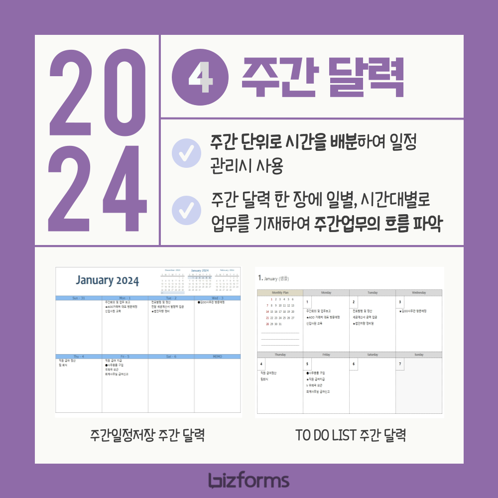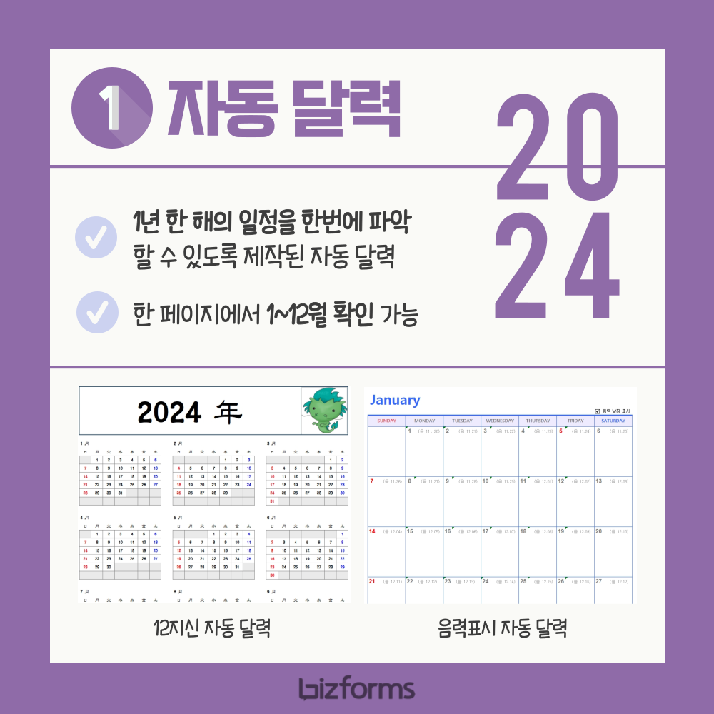 비즈폼에 새롭게 업데이트된 2024년 엑셀 달력을 만나보세요🙌
