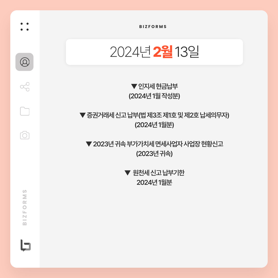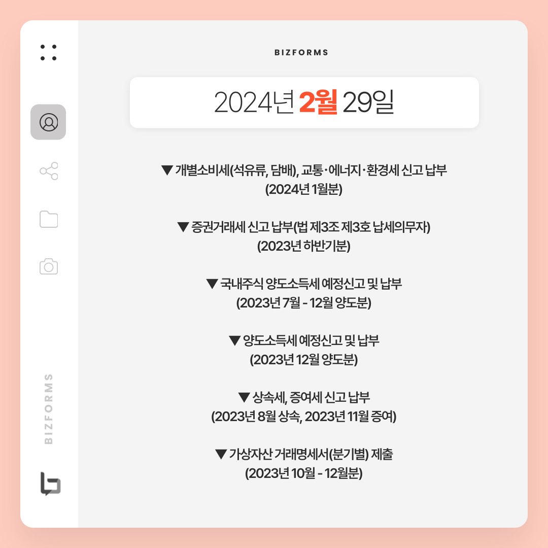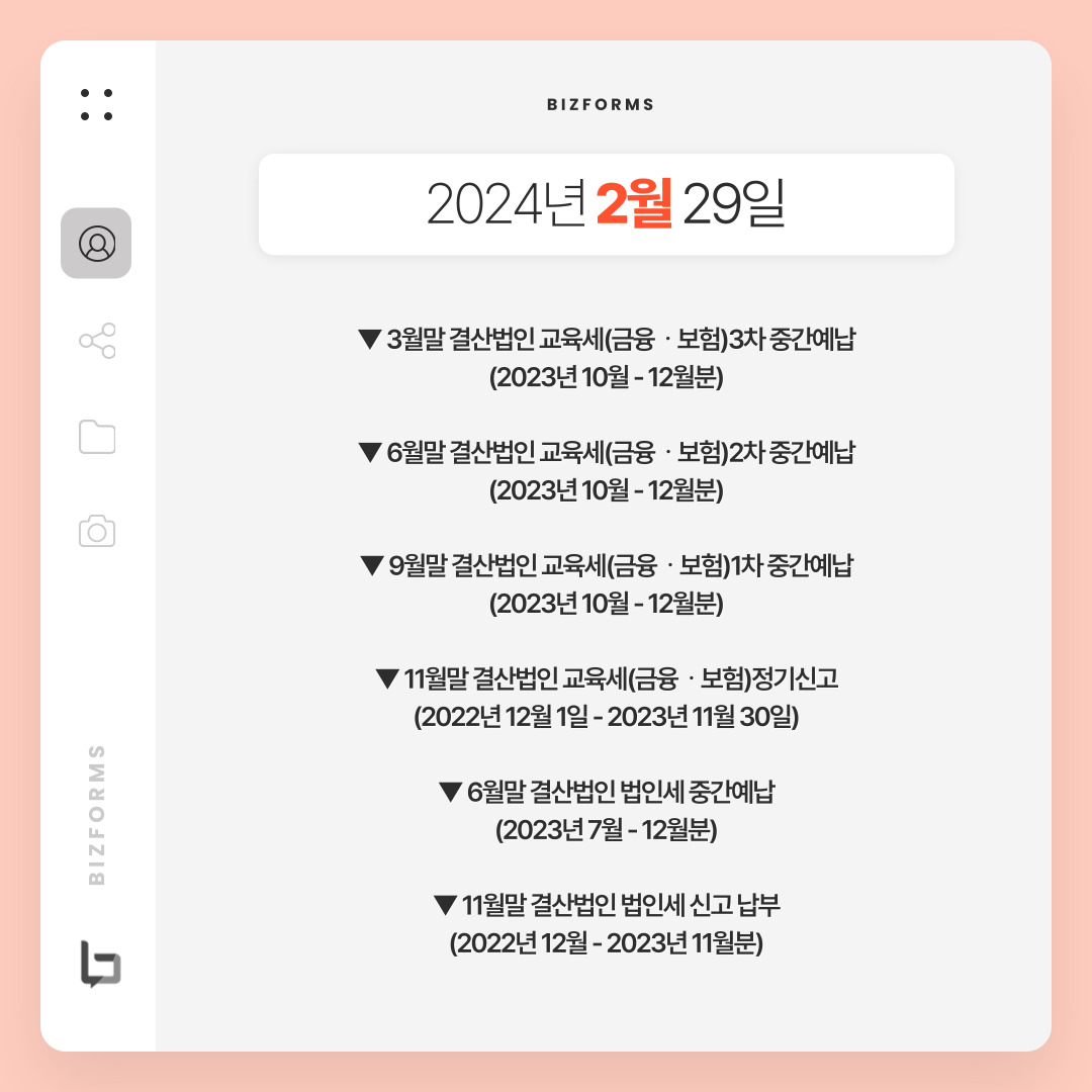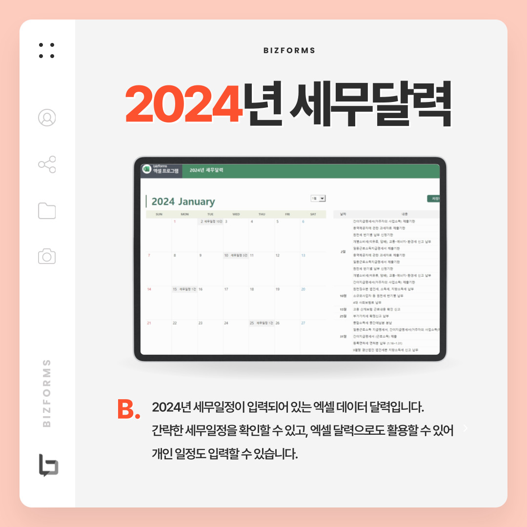 2024년 세무일정이 매월 업로드 될 예정입니다.