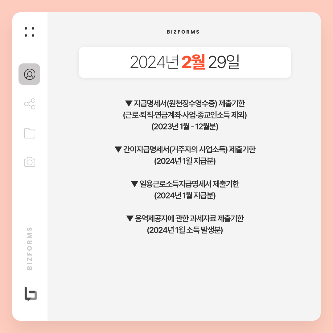 - 용역제공자에 관한 과세자료 제출기한 / 2024년 1월 소득 발생분