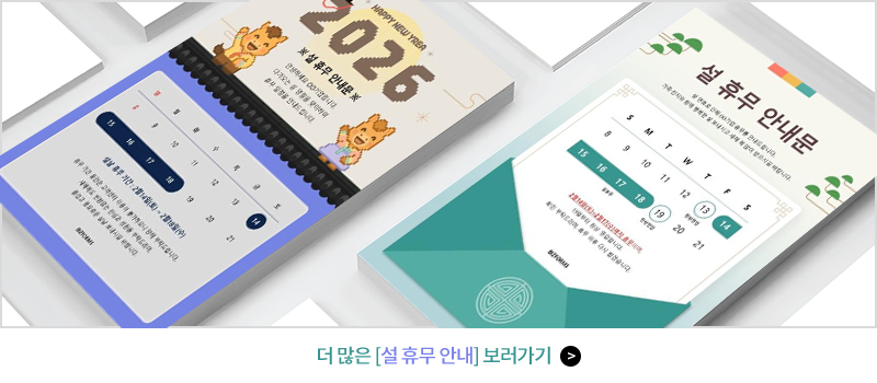 매년 똑같은 휴무 안내문보다는 설날 느낌이 물씬 나는 비즈폼 안내문을 사용해보시는 건 어떠실까요? 다양한 디자인으로 준비했으니 마음에 드시는 디자인으로 골라 사용해주세요!