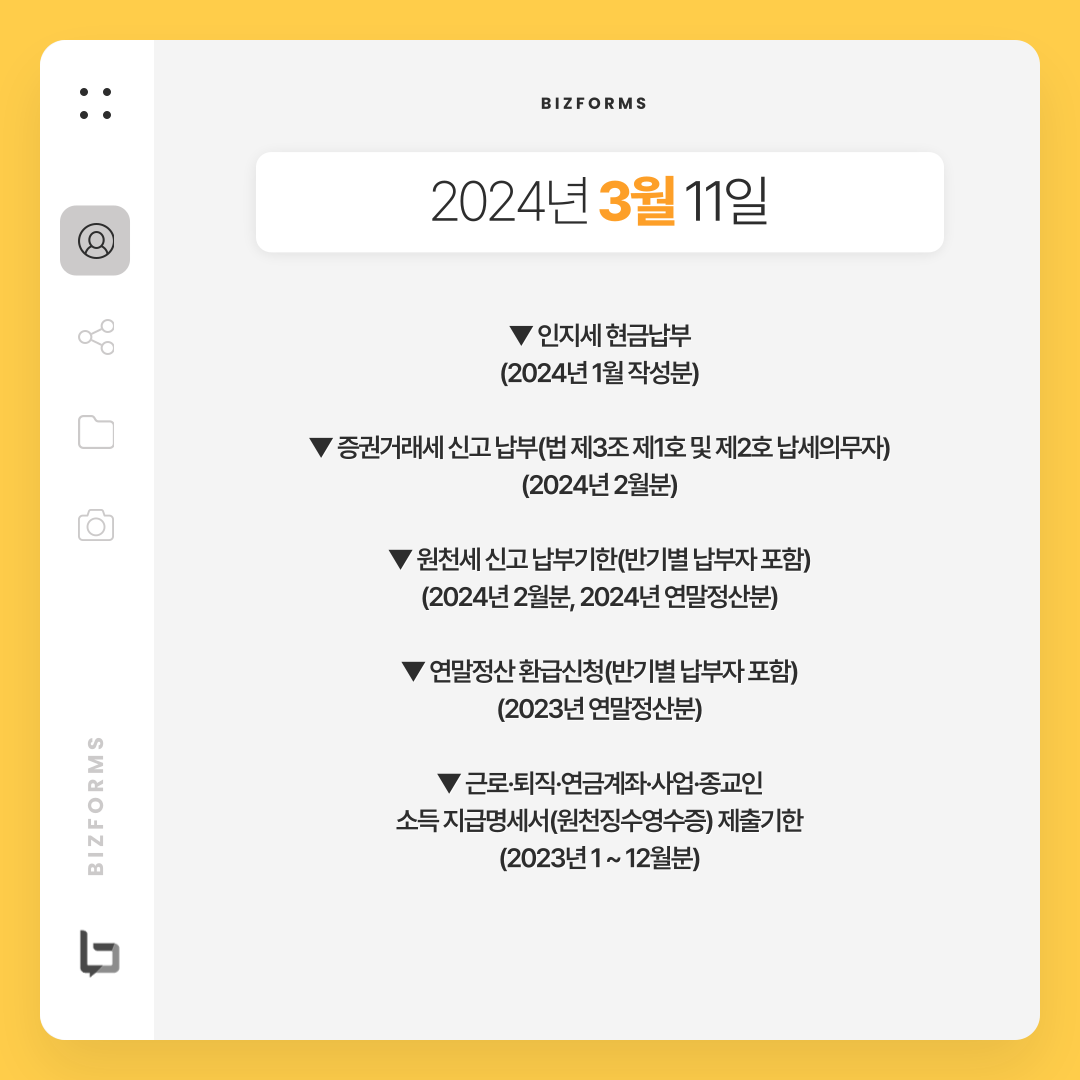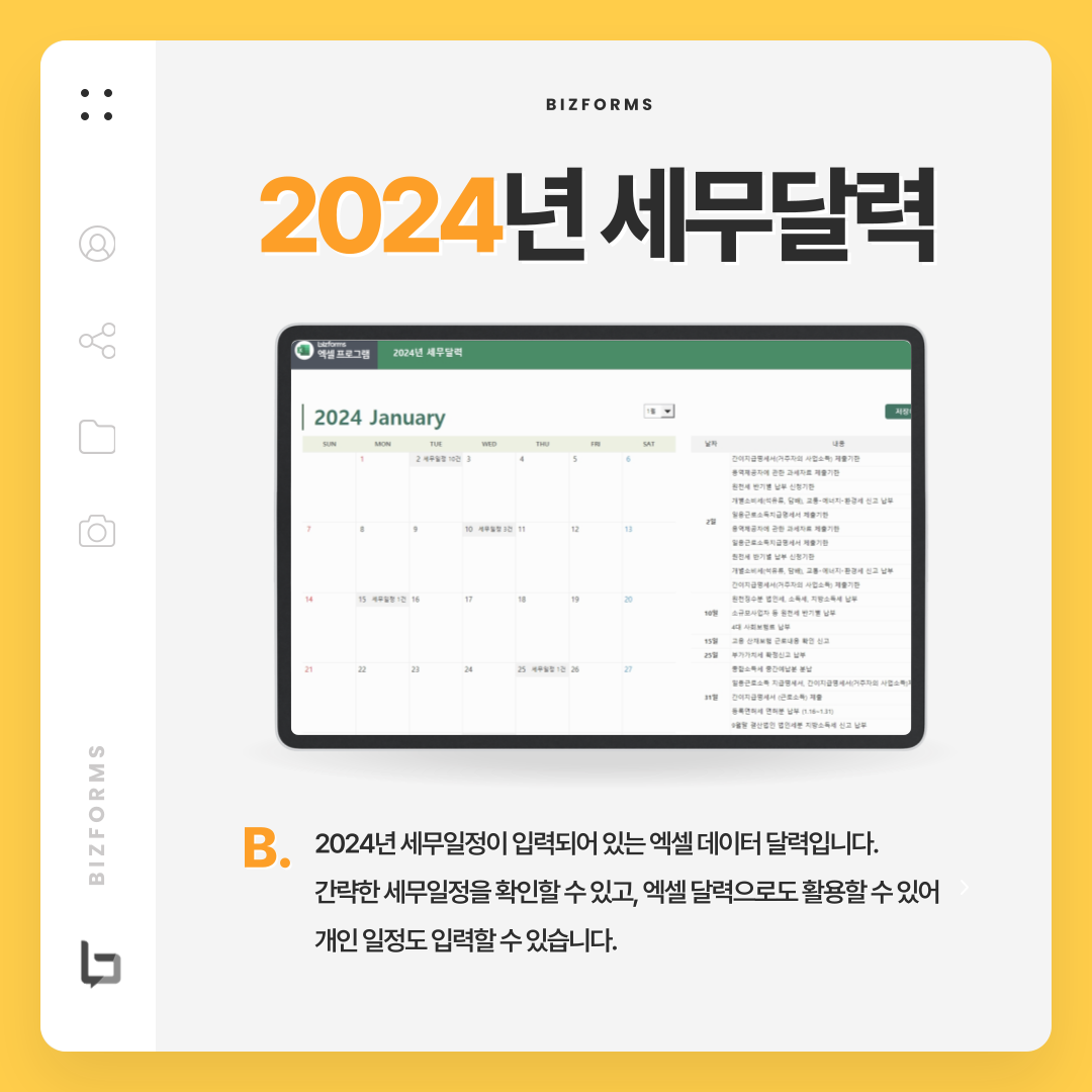2024년 세무일정이 매월 업로드 될 예정입니다.