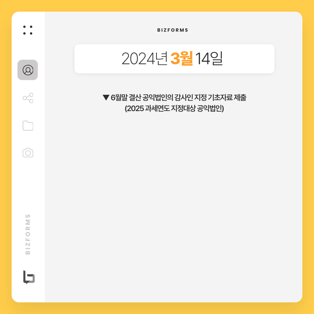 6월말 결산 공익법인의 감사인 지정 기초자료 제출 / 2025 과세연도 지정대상 공익법인