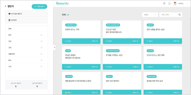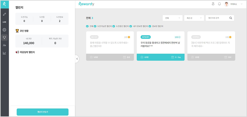 리워디에서 진행하는 챌린지는 직원들의 동기부여와 목표 달성을 위해 진행되고 회사의 분위기를 바꿀 수 있는 효과가 있습니다.