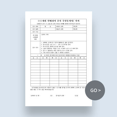 사전 동의가 없거나 충분한 안내없이 공사를 진행해 피해를 끼치는 경우 민원 등으로 인해 시공을 멈춰야만 하는 상황까지 발생할 수 있습니다. 이제 주민동의서와 공사안내문으로 미리 양해를 구한 뒤 공사를 진행하세요!