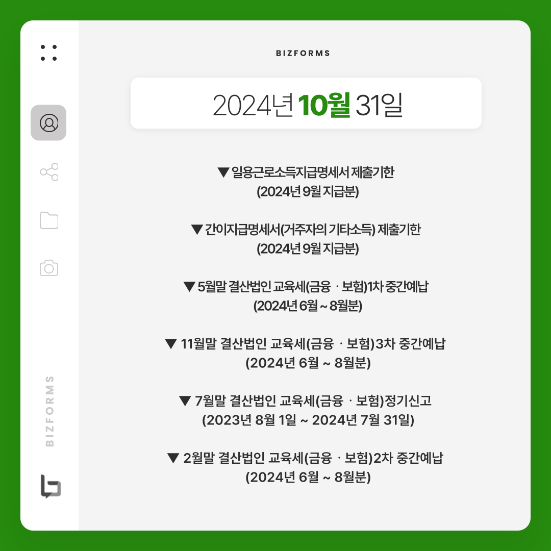 2024년 10월 세무일정