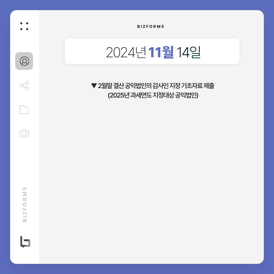 - 2월말 결산 공익법인의 감사인 지정 기초자료 제출 / 2025년 과세연도 지정대상 공익법인