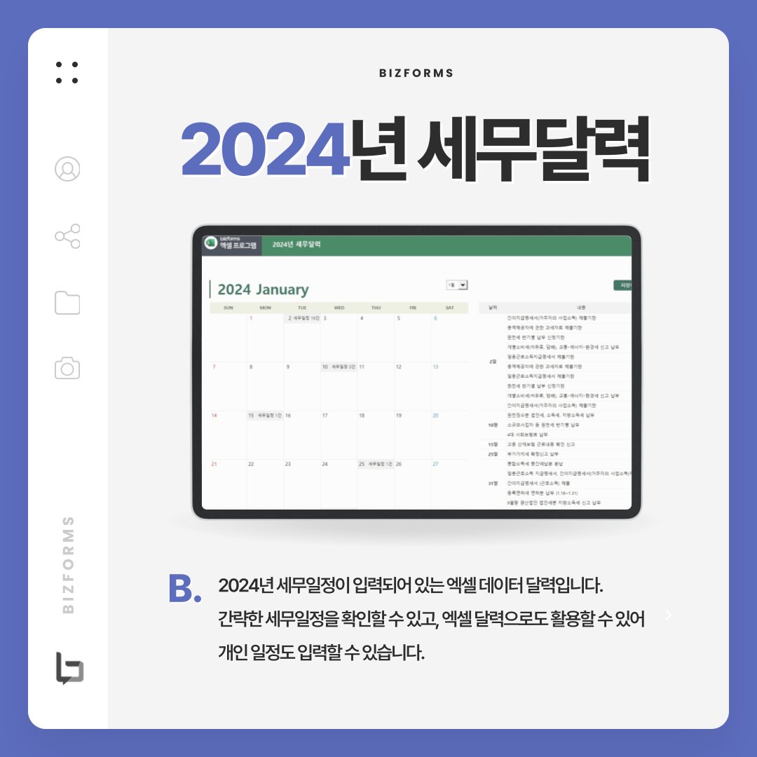 2024년 세무일정이 매월 업로드 될 예정입니다.