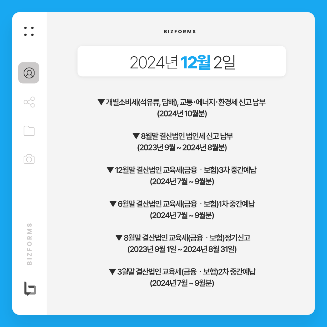 2024년 12월 세무일정